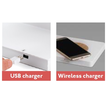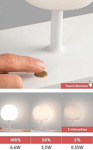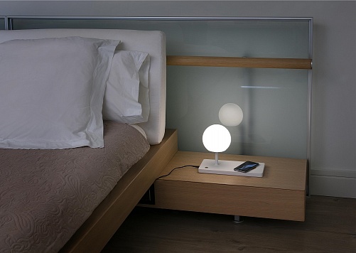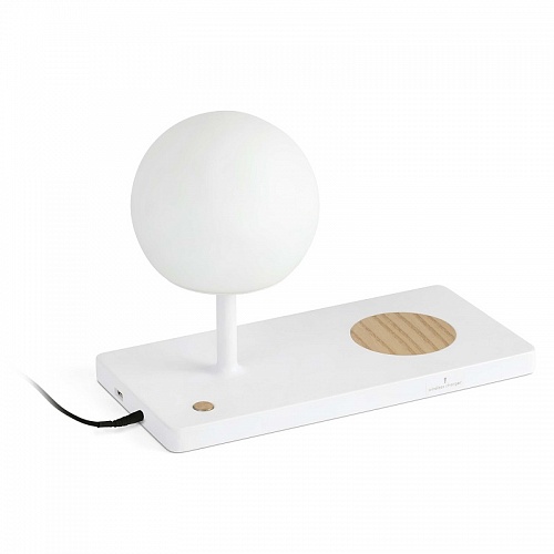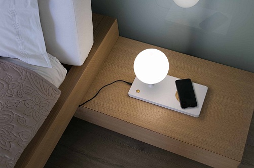 Настольная лампа с беспроводным зарядным устройством для мобильного телефона. В его конструкции есть и USB-порт. Источник света регулируется (6,6 Вт-3,3 Вт-0,33 Вт) благодаря переключателю на основании светильника. Предназначен для освещения спален и гостинной. Это хороший выбор для отелей.
