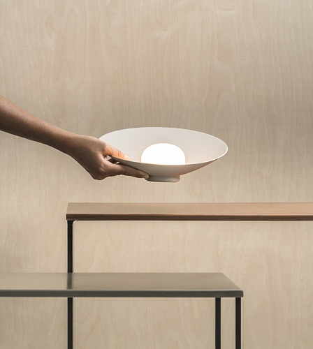 Настольные светильники Vibia. Musa 7404, арт 7404-58-15, цвет лососевый, диммируемый, с батареей, D=260 мм, под лампу LED 2,1W 2700K 238lm 700mA.