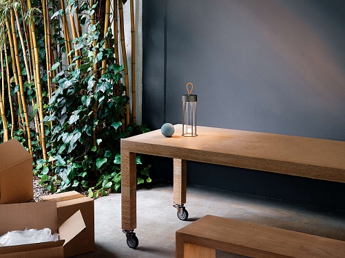 Переносные светильники FLOS. IN VITRO UNPLUGGED, арт F018E21K033, цвет антрацит, H=393 мм, IP 65, автономная работа 6ч, под лампу LED EDGE LIGHTING 2,5W 182lm ≠ FIXT 103lm 2700K CRI 90.