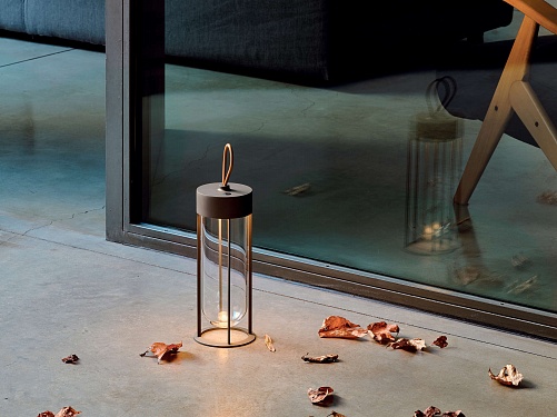 Переносные светильники FLOS. IN VITRO UNPLUGGED, арт F018E31K018, цвет темно-коричневый, H=393 мм, IP 65, автономная работа 6ч, под лампу LED EDGE LIGHTING 2,5W 195lm ≠ FIXT 110lm 3000K CRI 90.