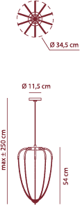 Алюминиевый светильник украшен цепями из отполированного черного никеля или натуральной латуни (по запросу).