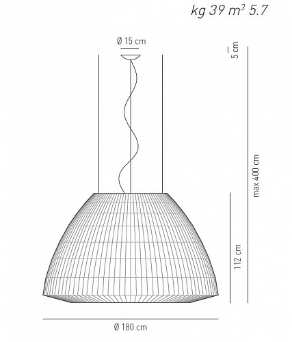 Металлический каркас, обтянутый полосами огнестойкой ткани понже. Доступно для заказа в десяти цветах: черный, зеленый, золотой желтый, электрик синий, красный, бургунди, белый, белый теплый, кирпичный, коричневый. Интерфейс с системой DALI.