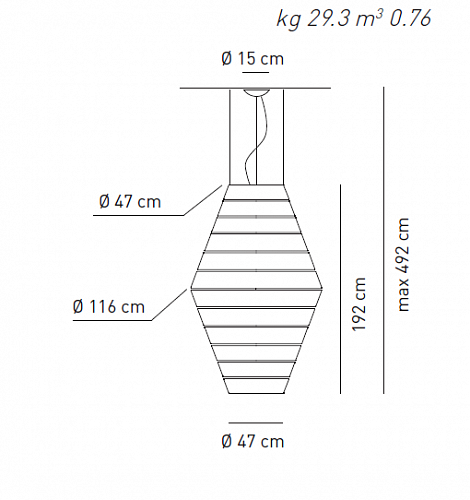 Подвесные люстры AXO Light. LAYERS, Модель SP LAY D XX E27 RS XX, цвет красный, обтянут огнестойкими полосами из ткани понже, H=1920 мм D=1160 мм, под лампы 9xE27 70W.