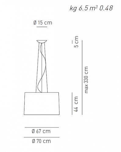 Абажур в форме конуса покрыт огнеупорной тканью (полиэстер и хлопок) с радиальным рассеивателем. Ткань: белый лед, оранжевый, голубой, слоновая кость, синий, коричневый, черный, бургунди. Рассеиватель: белый, электрик, тепло-белый, золотой желтый, коричневый, кирпичный, черный, бургунди, красный, зеленый.