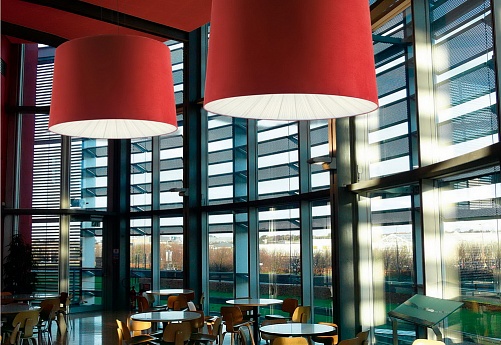 Подвесные люстры AXO Light. VELVET, Модель SP VEL 100 E27 RB BC, абажур из огнеупорной ткани цвета бургунди с белым радиальным рассеивателем, H=630 мм D=1000 мм, под лампы 4xE27 57W.