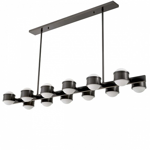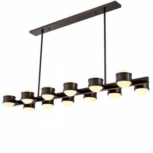 Подвесные люстры EICHHOLTZ. ALDO, арт 115463, бронзовая отделка, белое стекло, H=130 мм L=1600 мм W=410 мм, под лампы 12xE14.