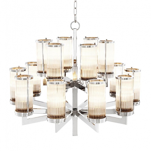 Подвесные люстры EICHHOLTZ. CLARIDGES, арт 111655, никелированная отделка, прозрачное стекло, H=730 мм D=755 мм, под лампы 16xE14 40W.