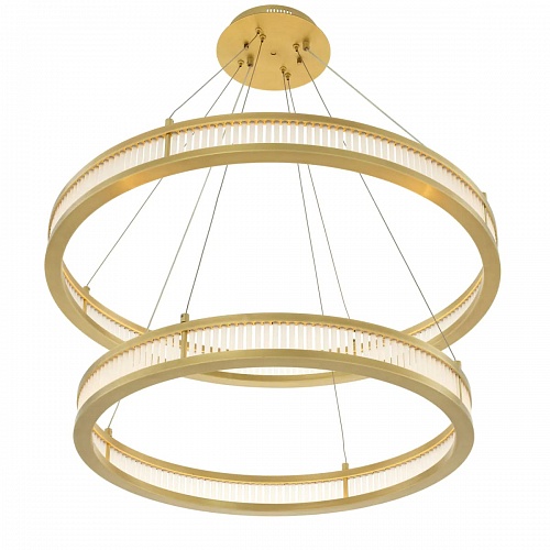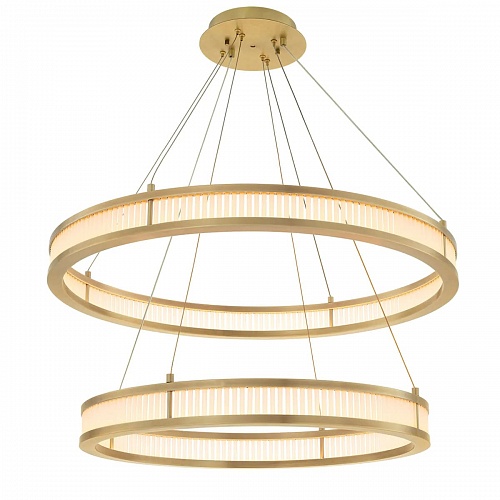 Подвесные люстры EICHHOLTZ. DAMIEN DOUBLE, арт 113902, отделка античная латунь, матовое стекло, H=800 мм D=850 мм, под лампу SMD LED strip 40W.