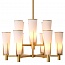 Его богатая отделка под старину из латуни сочетается со смелым геометрическим дизайном, который напоминает об эстетике ретро 1950-х и 1960-х годов. Конусообразные архитектурные плафоны, выполненные из белого стекла и украшенные старинным латунным ободком, дополняют современный облик в стиле середины века.