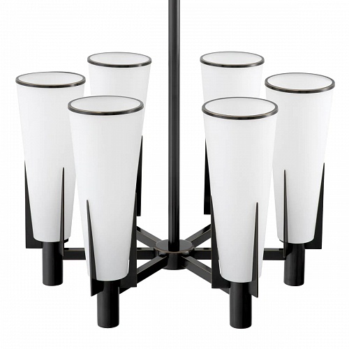 Подвесные люстры EICHHOLTZ. DINO, арт 115764, бронзовая отделка, белое стекло, H=780 мм D=600 мм, под лампы 6xE14.