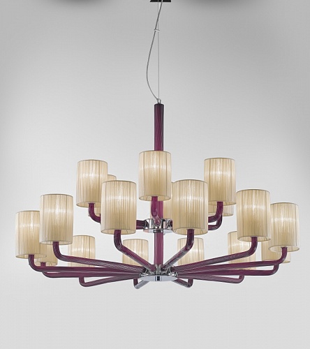 Подвесные люстры SYLCOM. CANCAN Модель 2120/12+6/BL/AMT, хромированная металлическая конструкция, отделка молочно-белым и аметистовым стеклом, H=770 мм D=1180 мм, под лампы 18xE14 42W.