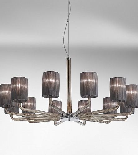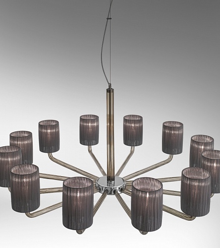 Подвесные люстры SYLCOM. CANCAN Модель 2120/12/FU, хромированная металлическая конструкция, отделка дымчатым стеклом, H=580 мм D=1180 мм, под лампы 12xE14 42W.