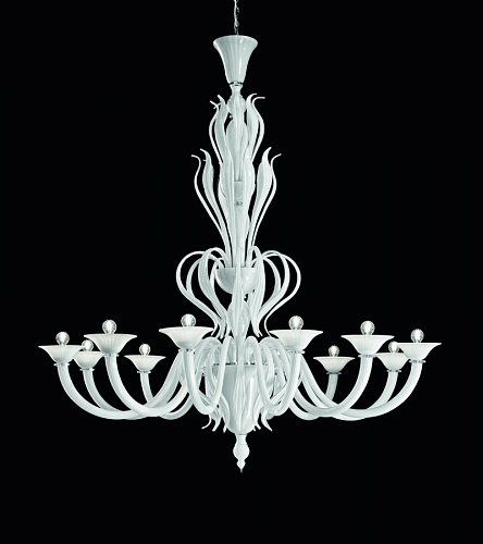 Подвесные люстры SYLCOM. PISANI Модель 1431/12/K/BL/CR, хромированная металлическая конструкция, отделка молочно-белым и хрустальным стеклом, H=1600 мм D=1480 мм, под лампы 12xE14 40W.