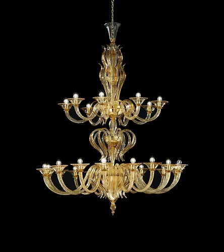 Подвесные люстры SYLCOM. PISANI Модель 1431/16+8/D/AS, позолоченная металлическая конструкция, отделка янтарным стеклом Соммерсо, H=1920 мм D=1520 мм, под лампы 24xE14 40W.
