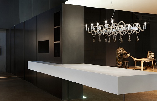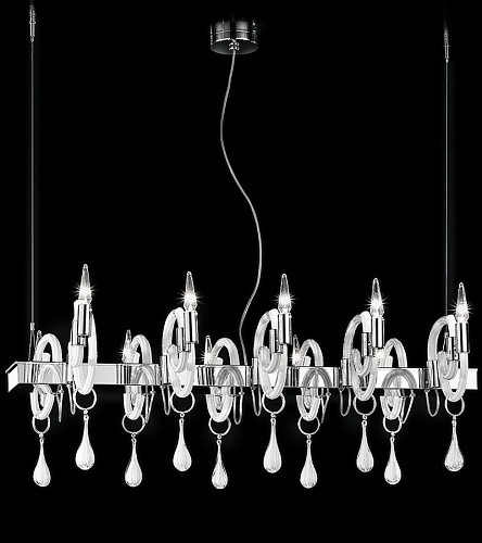 Подвесные люстры SYLCOM. STREET Модель 2000/10/BL, хромированная металлическая конструкция, отделка молочно-белым стеклом, H=450 мм L=1160 мм W=900 мм, под лампы 10xE14 40W.