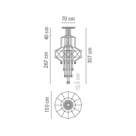 Подвесные люстры Vibia. Wireflow Chandelier 0374, арт 0374-04-1A, цвет черный, диммируемый, H=3070 мм D=1500 мм, под лампы 43xLED 4,5W 2700K 21082lm CRI>80 350mA.