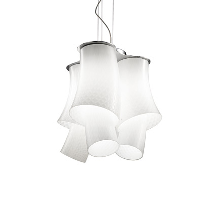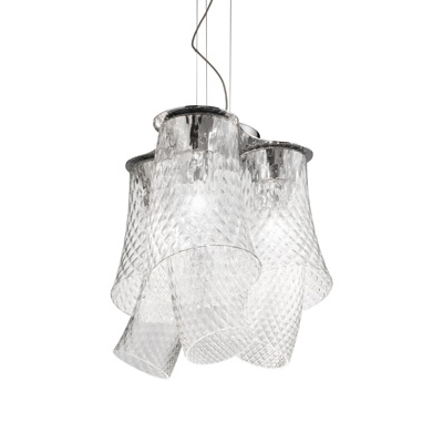 Подвесные люстры Vistosi. ASSIBA SP 6, хромированная структура, плафоны из блестящего выдувного стекла, диаметр 500 мм, под лампы 3xE27 77W.