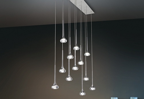 Подвесные светильники AXO Light. FAIRY, Модель SP FAI 12 R CS CR LED, хромированная отделка с хрустальными плафонами, L=1200 мм, под лампы 12xLED 6,2W 2700K 478lm.