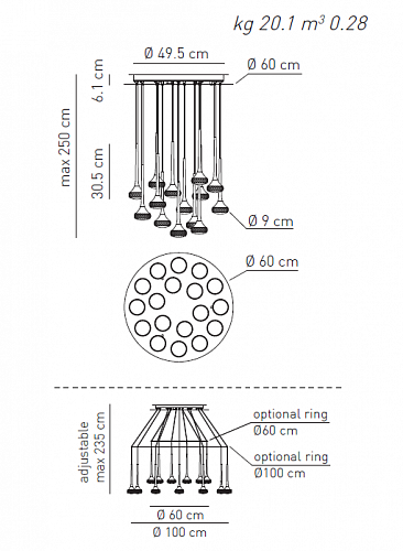 Встроенные источники света. Мы предлагаем использовать кольца диаметром 600 мм и 1000 мм для создания индивидуальных композиций (не включены в поставку).