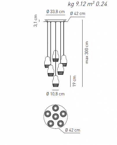 Подвесные светильники AXO Light. FEDORA, Модель SP FEDOR 6 CR BC GU1, цвет хром, D=420 мм, под лампы 6xGU10 LED 7,5W.