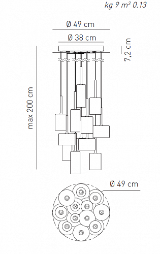Подвесные светильники AXO Light. SPILLRAY, Модель SP SPIL 12 CS CR G4L, прозрачные плафоны, D=490 мм, под лампы 12xG4 LED 1,5W 3000K 12V.