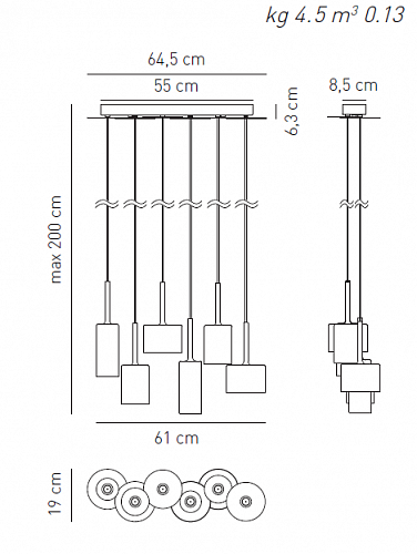 Подвесные светильники AXO Light. SPILLRAY, Модель SP SPILL 6 BR CR 12V, плафоны цвета бронзовый металлик, диммируемый, L=610 мм, под лампы 6xG4 20W 3000K 12V.
