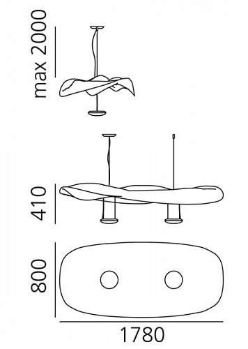 Подвесные светильники Artemide. COSMIC ANGEL, арт 1513010A, цвет хром, регулируемая яркость, H=600 мм L=1780 мм W=800 мм, под лампы 2xR7s 400W 2950K 9000lm.