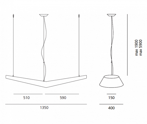 Подвесные светильники Artemide. MOUETTE симметричный, арт 860710L, цвет белый опаловый, регулируемая яркость, L=1350 мм, под лампы 4xG5 24W 3000K 1750lm.