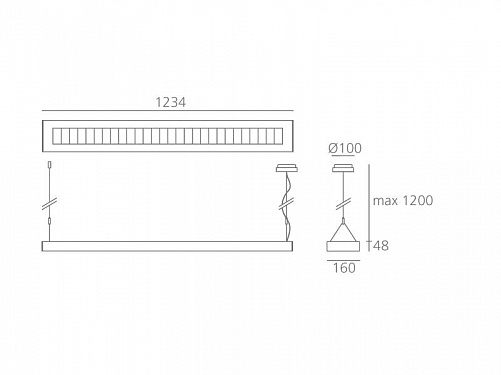 В комплекте: электронный балласт, регулируемый стальной подвес с кабелем питания.