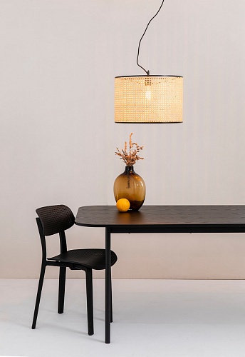 MAMBO - это коллекция светильников для внутреннего освещения, разработанная Faro Lab. Это черный подвесной светильник с плетенным абажуром из ротанга предназначена для освещения спален и гостиных. Это хороший выбор для отелей.