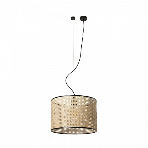 Подвесные светильники Faro. MAMBO, арт 64314-49, цвет матовый черный/ротанг, кабель с поворотным зажимом, D=450 мм, под лампу E27 15W.