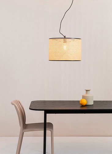 MAMBO - это коллекция светильников для внутреннего освещения, разработанная Faro Lab. Это черный подвесной светильник с плетенным абажуром из ротанга предназначена для освещения спален и гостиных. Это хороший выбор для отелей.