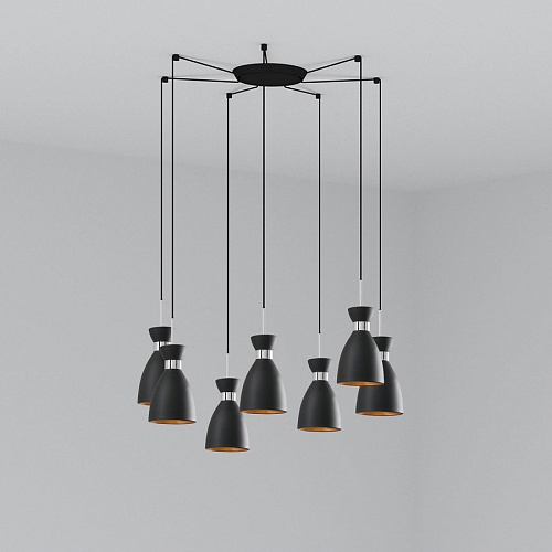 Подвесные светильники Faro. RETRO, арт 20050-7L, цвет матовый черный, 7 абажуров диаметром по 115 мм, под лампы 7xE27 15W.