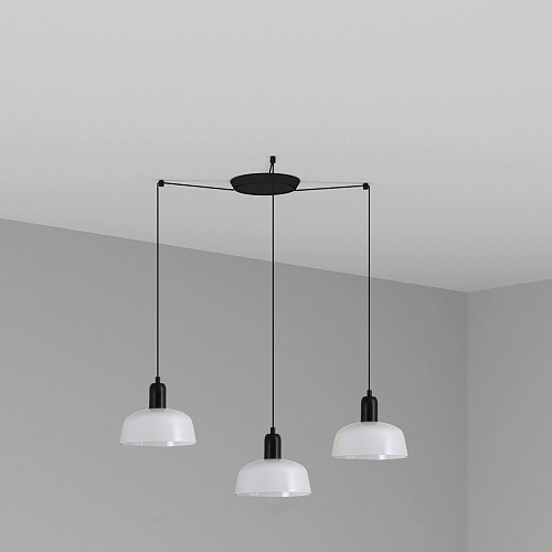 Подвесные светильники Faro. TATAWIN S, арт 20340-116-3L, матовый черный/опал, размер абажура H=81 мм D=184 мм, под лампы 3xE27.