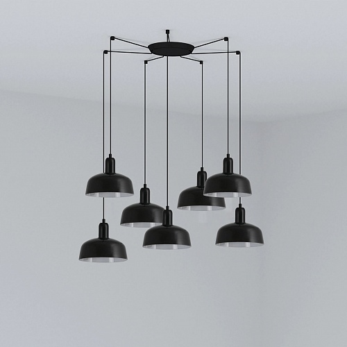 Подвесные светильники Faro. TATAWIN S, арт 20340-117-7L, матовый черный/глянцевый черный, размер абажура H=81 мм D=184 мм, под лампы 7xE27.