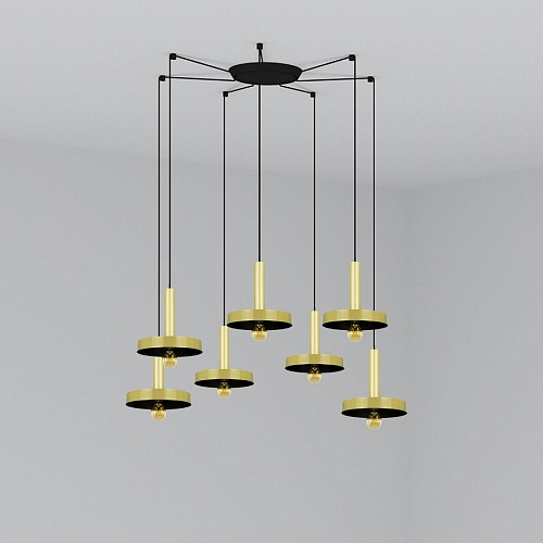 Подвесные светильники Faro. WHIZZ, арт 20161-7L, цвет атласное золото/черный, под лампы 7xE27 15W.