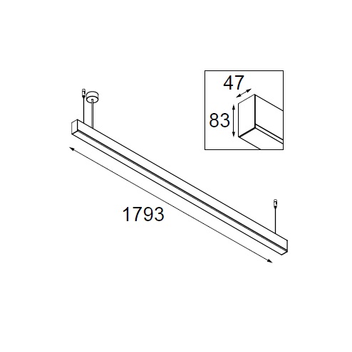 Подвесные светильники Modular. SL mini poly out TL5 continuous down (L=1787mm) подвесной, арт 93421020, цвет алюминий, под лампу 2x T16 G5 21/39W.