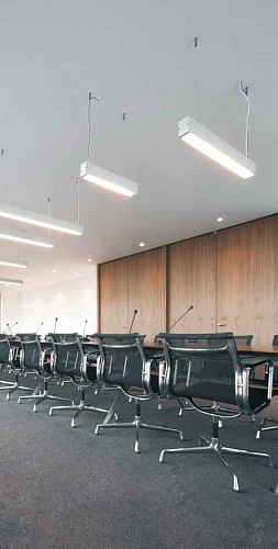 Подвесные светильники Modular. SL75 TL5 continuous poly down (L=1192mm) подвесной, арт 93350020, цвет алюминий, под лампу 1x T16 G5 28/54W.