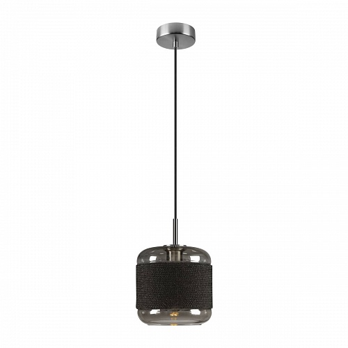 Подвесные светильники SLV Marbel. PANTILO ROPE 20, арт 1007588, светильник подвесной для лампы LED E27 15Вт макс., с основанием, серебристый/черная пенька/дымчатое стекло.