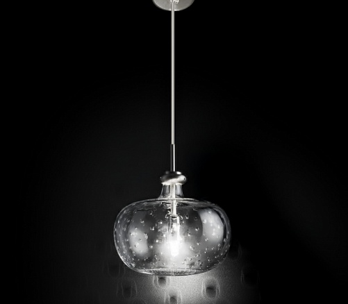 Подвесные светильники SYLCOM. APHROS Модель 0700/B/CR, белый металл, плафон ручной работы из выдувного прозрачного стекла, под лампу LED 6,5W 3000K CRI90 700lm.