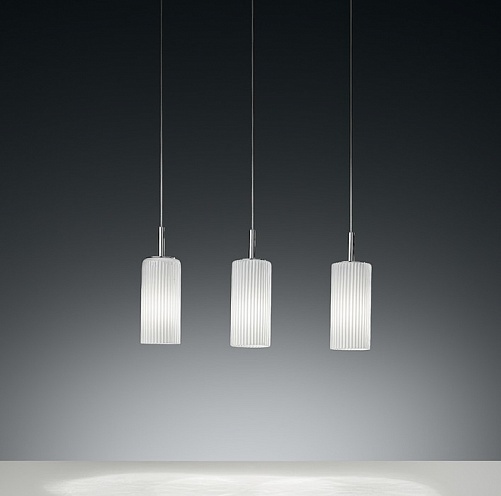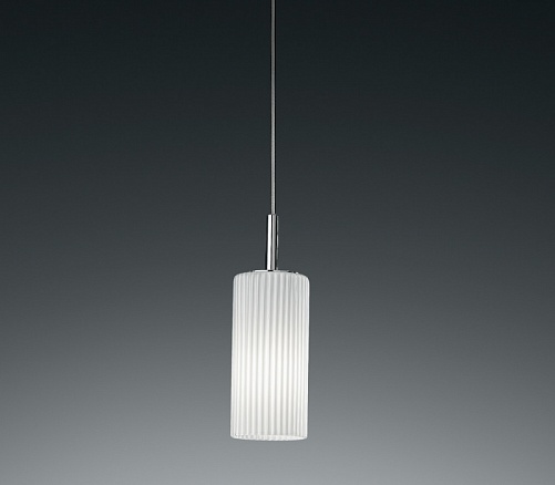 Подвесные светильники SYLCOM. KORINTHOS Модель 1000/LUX/T/B/BL, металлическая отделка титан, кабель с белой оплеткой, плафон из молочно-белого стекла, под лампу LED 6,5W 3000K CRI90 700lm.