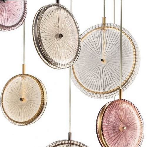 Подвесные светильники SYLCOM. LULU Модель 0610/LUX/OO/B/AMT, матово-золотая металлическая конструкция, белая оплетка кабеля, аметистовая отделка стеклом, D=200 мм, под лампу LED 6W 3000K CRI90 800lm.