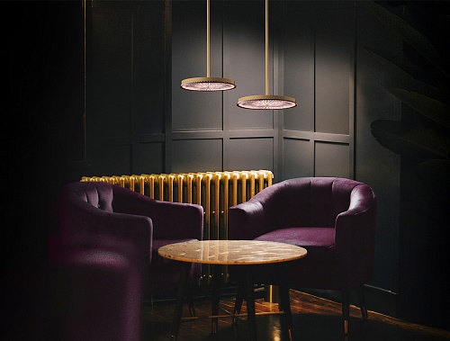 Подвесные светильники SYLCOM. LULU Модель 0614/LUX/OO/CH/AMT, матово-золотая металлическая конструкция, оплетка кабеля цвета шампань, аметистовая отделка стеклом, D=200 мм, под лампу LED 6W 3000K CRI90 800lm.