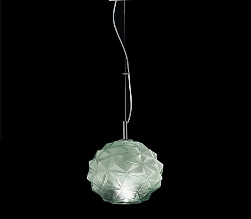 Подвесные светильники SYLCOM. EMISPHERA Модель 0800/LUX/T/B/OCE-S, металлическая отделка титан, кабель с белой оплеткой, плафон из выдувного стекла цвета морской волны, D=200 мм, под лампу LED 6,5W 3000K CRI90 700Lm.