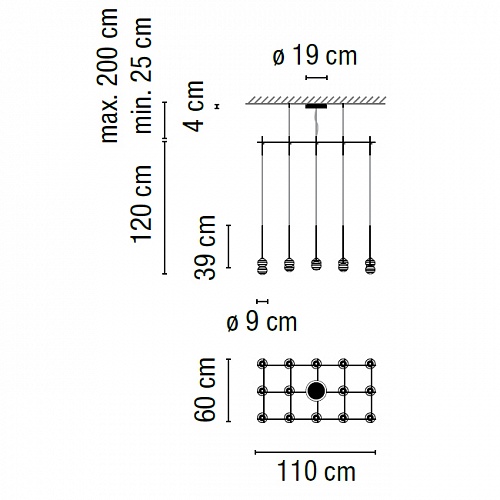 Подвесные светильники Vibia. Algorithm 0870, арт 0870-18-1A, цвет графит, диммируемый, H=1200 мм L=1100 мм W=600 мм, под лампы 15xLED 3,15W 2700K 4684lm CRI>80 1050mA.