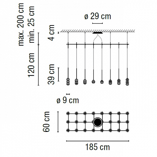 Подвесные светильники Vibia. Algorithm 0875, арт 0875-18-1A, цвет графит, диммируемый, H=1200 мм L=1850 мм W=600 мм, под лампы 24xLED 3,15W 2700K 7495lm CRI>80 1050mA.