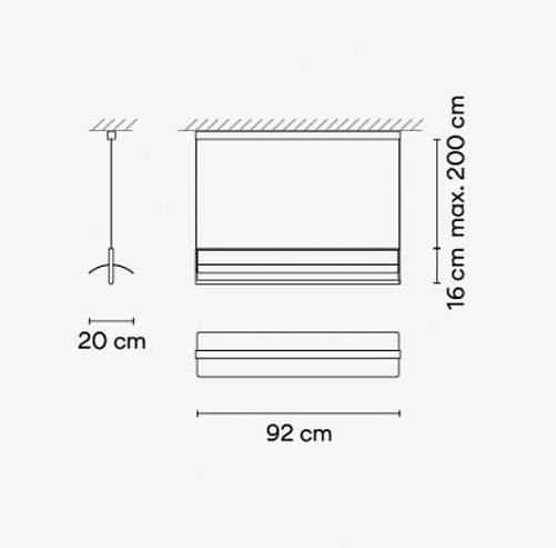 Подвеска с выпуклым абажуром имеет открытую рамку, в которую встроены светодиоды, и содержит отражатель, выполненный из закругленного листа металла. Он парит на почти невидимых кабелях над головой, отбрасывая рассеянное свечение, которое напоминает льющийся дождь света.
