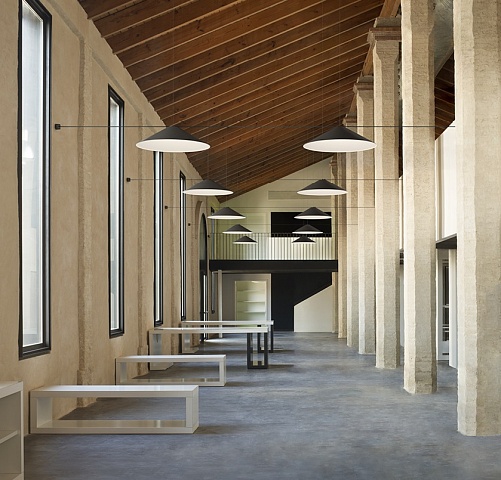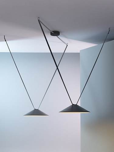Для подвеса требуются ленты доступные в четырех цветах (черный, терракотовый, синий и зеленый) и дополнительные аксессуары (см. на фото). Направленное диффузионное освещение излучает мягкий свет, который генерирует низкий контраст между освещенными участками и отбрасываемыми тенями.