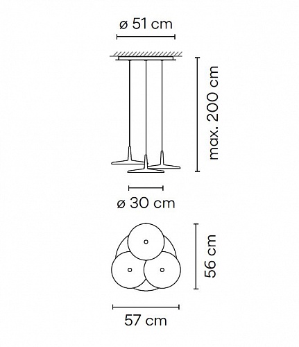 Подвесные светильники Vibia. Skan 0280, арт 0280-37-1B, цвет терракотовый, L=570 мм W=560 мм, диммируемый, под лампы 3xLED PLATE 13,9W 350mA 2700K CRI80 3123lm