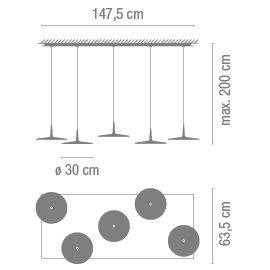 Подвесные светильники Vibia. Skan 0282, арт 0282-10-1B, цвет белый, L=1475 мм W=635 мм, диммируемый, под лампы 5xLED PLATE 13,9W 350mA 2700K CRI80 5205lm